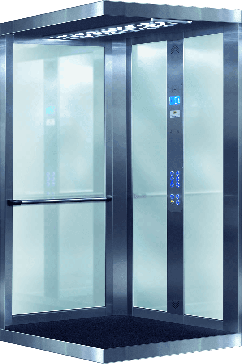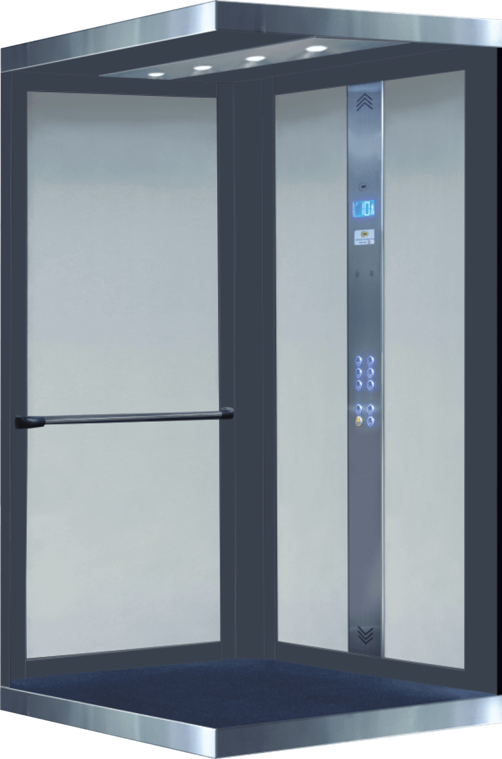 Indicado para residências com até 7 andares, alcança velocidades maiores e permite maior capacidade de passageiros, podendo ser instalado em residências multifamiliares.